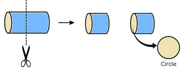 (i) When a circular pipe is given a vertical cut we get a circular cross-section as shown: