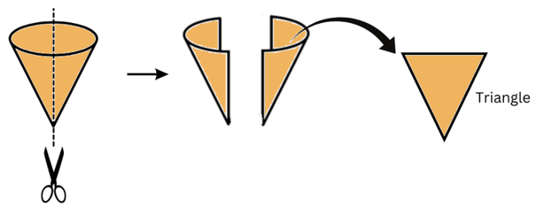 (i) When an ice cream cone is given a vertical cut we get a triangular cross-section as shown: