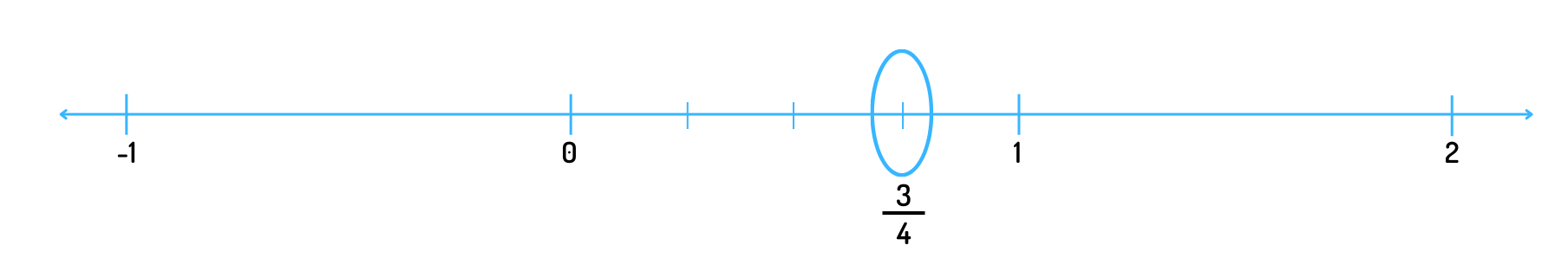 3/4 lies between 0 and 1. The number line between 0 and 1 is divided into 4 equal parts and 3/4 is marked on the number line as shown below: