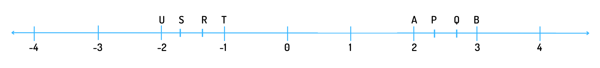 5. The points P, Q, R, S, T, U, A and B on the number line are such that, TR = RS = SU and AP = PQ = QB. Name the rational numbers represented by P, Q, R and S.