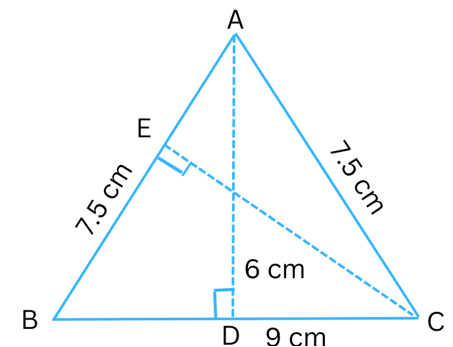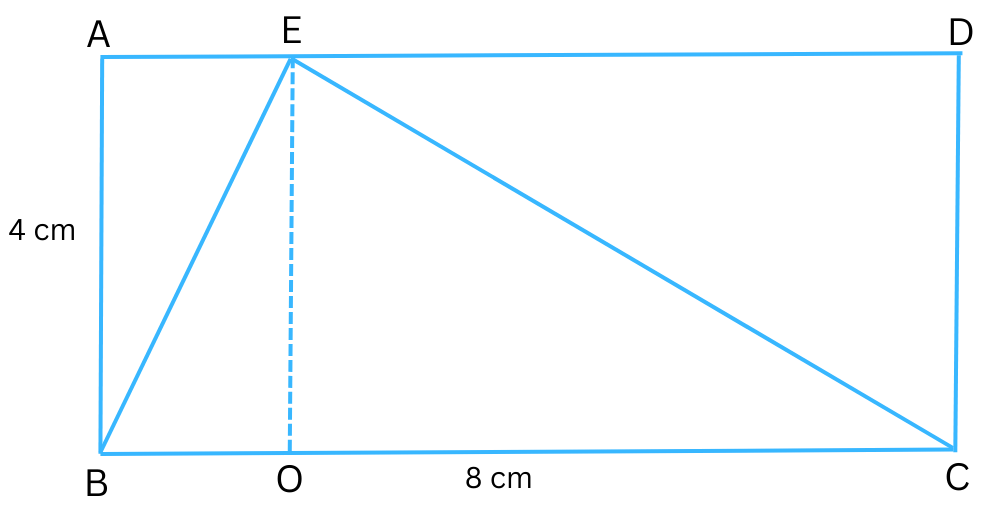 Area of the triangle = 1/2 × Base × Height = 1/2 × BC × EO = 1/2 × 8 × 4 = 16 cm2.