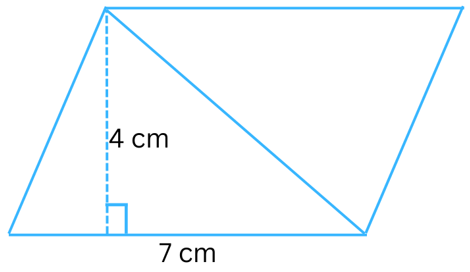 Area of the parallelogram = b × h = 7 cm × 4 cm = 28 cm2.