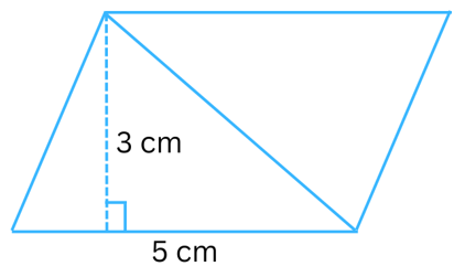 Area of the parallelogram = b × h = 5 cm × 3 cm = 15 cm2.