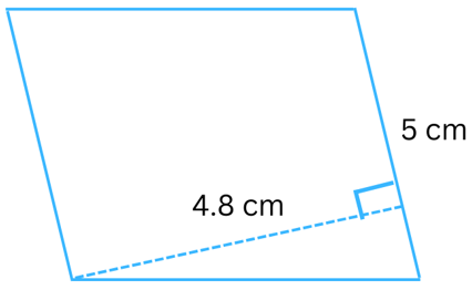Area of the parallelogram = b × h = 5 cm × 4.8 cm = 24 cm2.