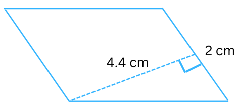 Area of the parallelogram = b × h = 2 cm × 4.4 cm = 8.8 cm2.