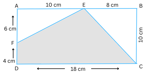 The area of part of the rectangle excluding the triangle = (32 – 16) cm2 = 16 cm2.