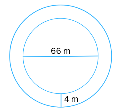 3. A circular path of radius 6 cm has a 1 cm path all around it. What is the circumference of the outer path?