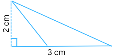 Area of the triangle = 1/2 × base × height = 1/2 × b × h = 1/2 × 3 cm × 2 cm = 3 cm2.