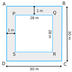 Area of the rectangular garden = Length × Breadth = 30 m × 14 m = 420 m2.