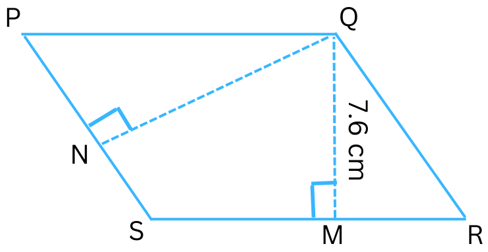 5. PQRS is a parallelogram (Fig). QM is the height from Q to SR and QN is the height from Q to PS. If SR = 12 cm and QM = 7.6 cm. Find: