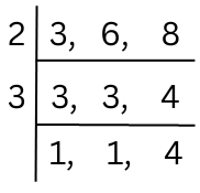 Answer: Let us first find the smallest number which is divisible by each of 3, 6, 8. This is the LCM of 3, 6, 8.