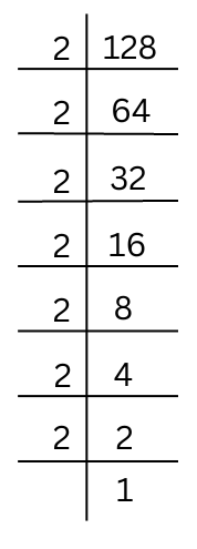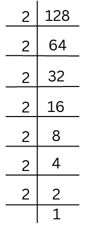 128 = 2 × 2 × 2 × 2 × 2 × 2 × 2