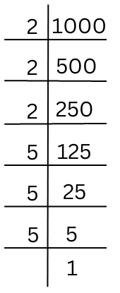 The prime factorisation of 1000 is done.