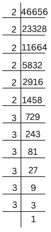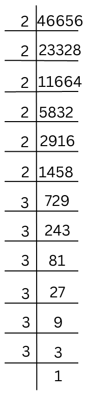 The prime factorisation of 46656 is done.