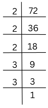 The prime factorisation of 72 is done.