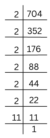The prime factorisation of 704 is done.