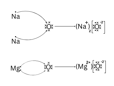 (ii) Show the formation of Na2O and MgO by the transfer of electrons.