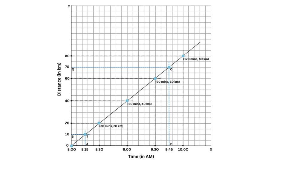 - The line graph also enables us to find the distance moved by the bus at any instant of time, which cannot be done using a bar graph.