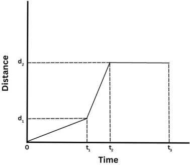 For the time period t1 the car moves with constant speed since that part of the distance-time graph is a straight line. The corresponding distance covered is d1.