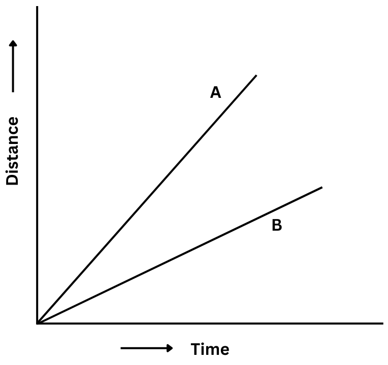 We can conclude from the graph, that after any given time vehicle A will have covered a greater distance than vehicle B and so the speed of vehicle A is greater than vehicle B. Hence, vehicle A is moving faster than vehicle B.