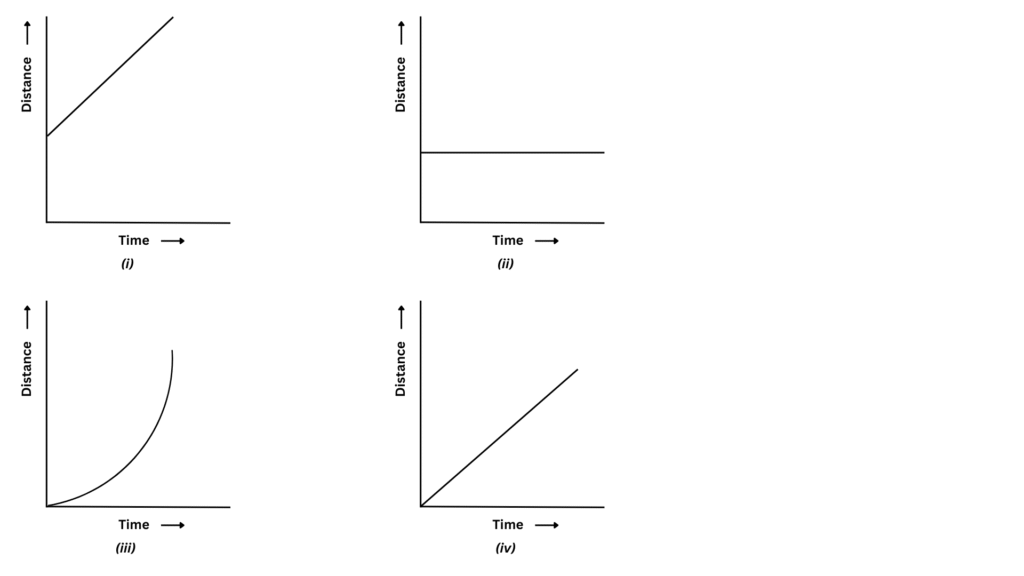 (e) Curved distance-time graph | (iv) Non-uniform motion |