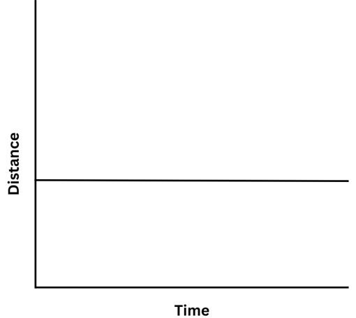 The shape of the distance-time graph for a parked car or a car with no motion will be a horizontal straight line parallel to the x-axis which we have chosen to represent time. Notice that the distance does not change with time, indicating that the car is at rest.