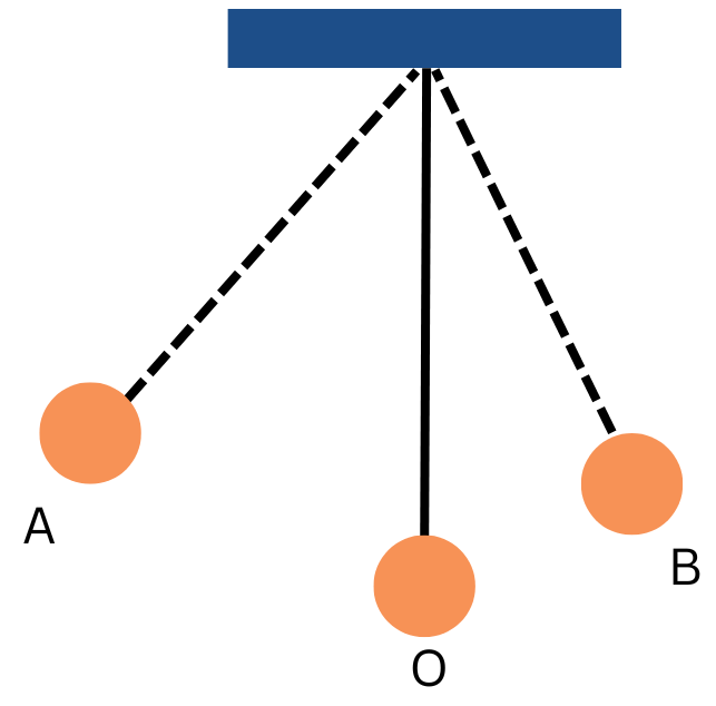 9. A simple pendulum below without any disturbance. O is the mean position and A and B are the two extreme positions. Do you notice anything wrong with the figure?
