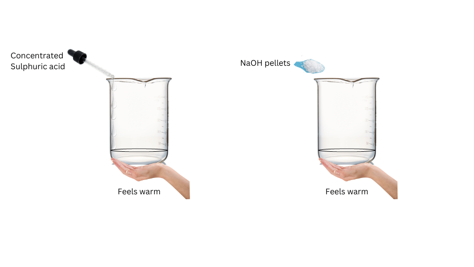 Aim: To add concentrated H2SO4 and sodium hydroxide pellets to water and conclude based on the observations.