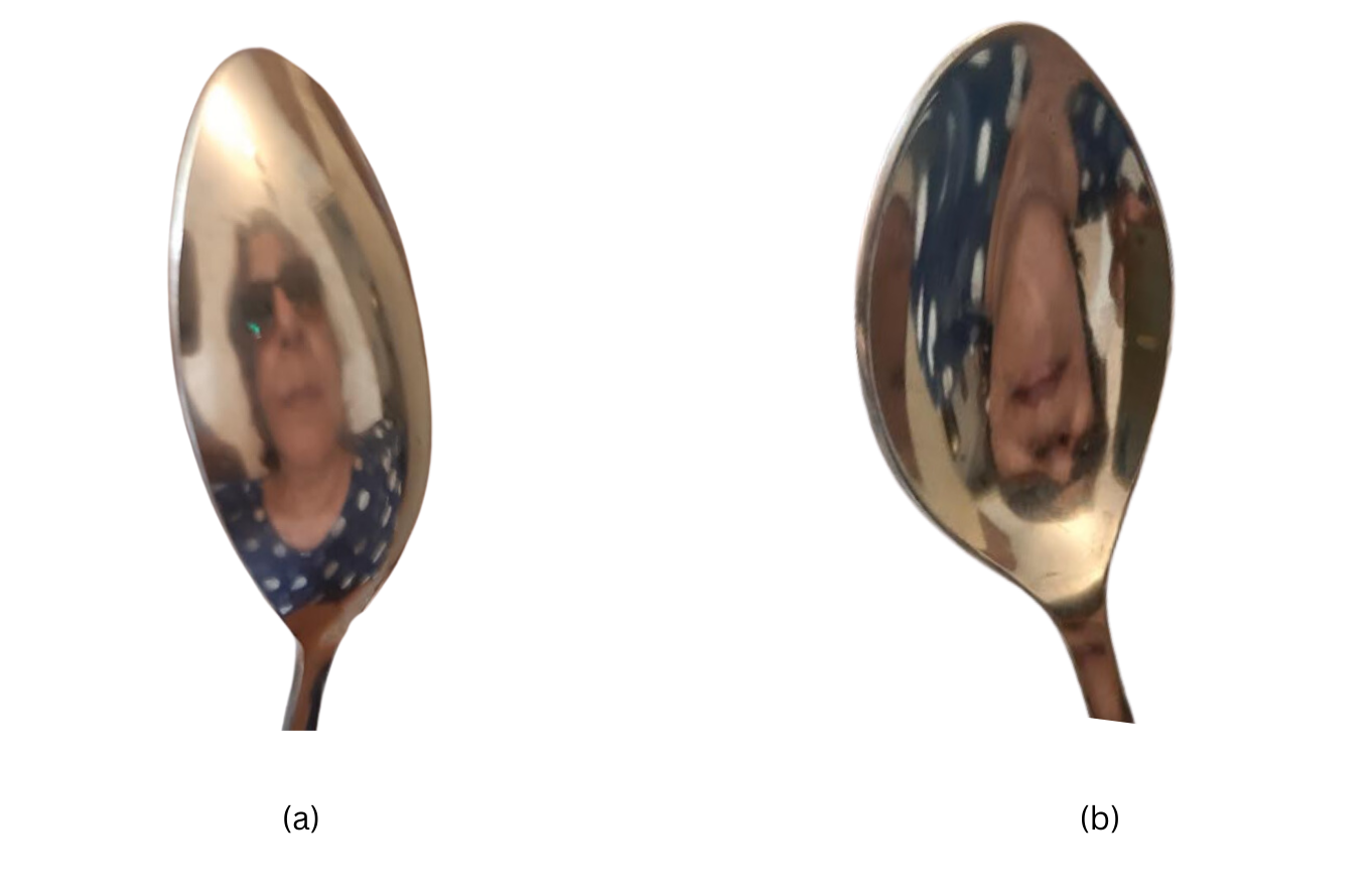 Aim: To observe your facial image on the outer side of the spoon and then on the inner side of the spoon, compare them with that of a plane mirror and make the necessary conclusions.
