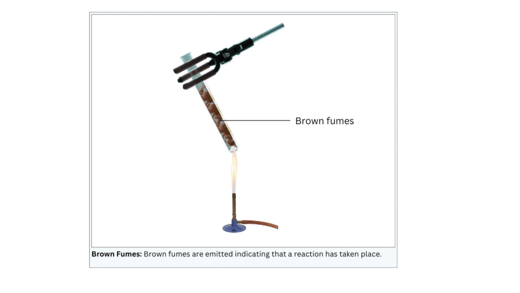 Materials Required: 2 g lead nitrate powder, boiling tube, tongs, Bunsen burner.