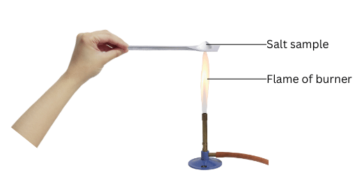 - Take a small amount of a sample on a metal spatula and heat directly on the flame (Fig. 3.7). Repeat with other samples.