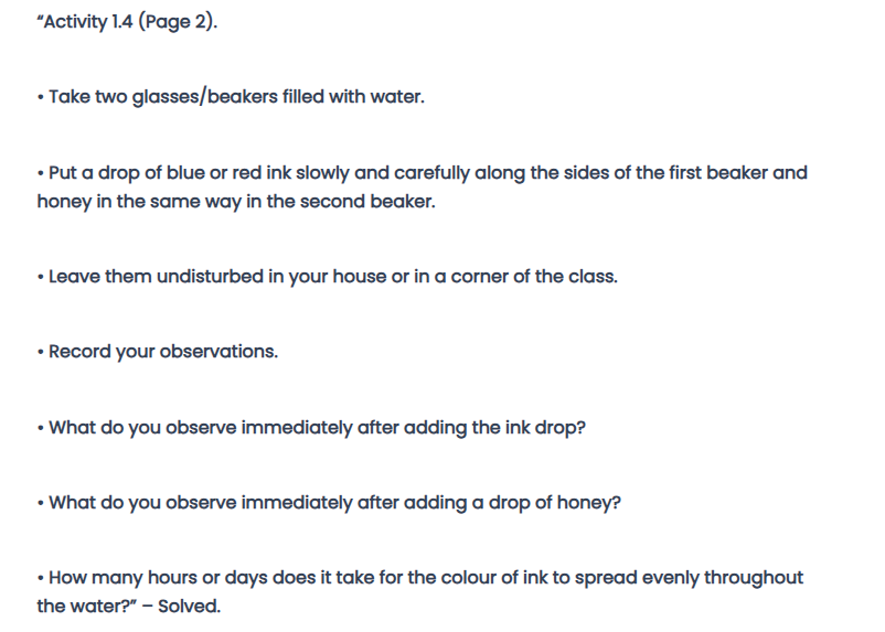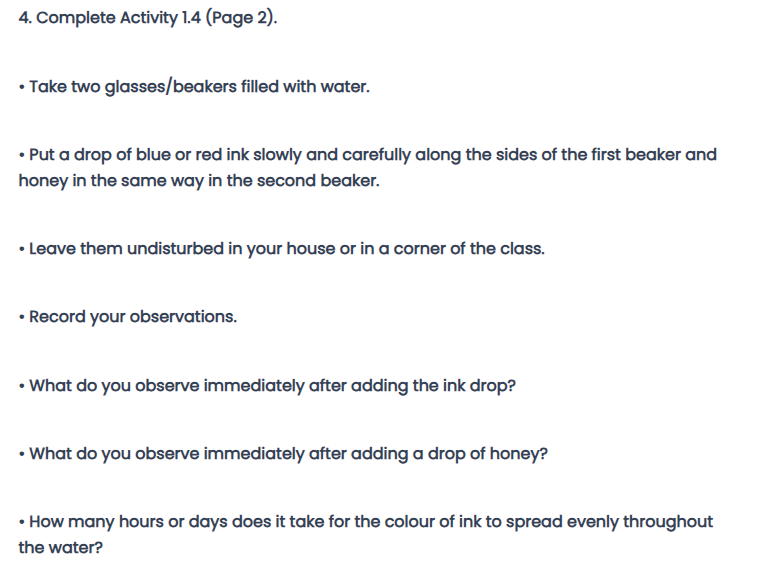 Materials Required: Two beakers,water, red ink, honey, two droppers.